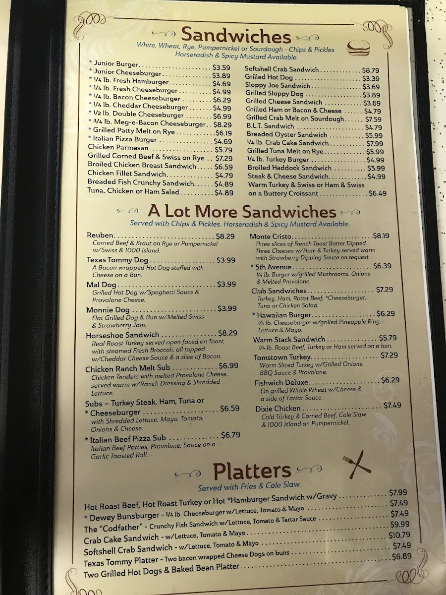 Turkey, ham, roast beef, cheeseburger, tuna or chicken salad.